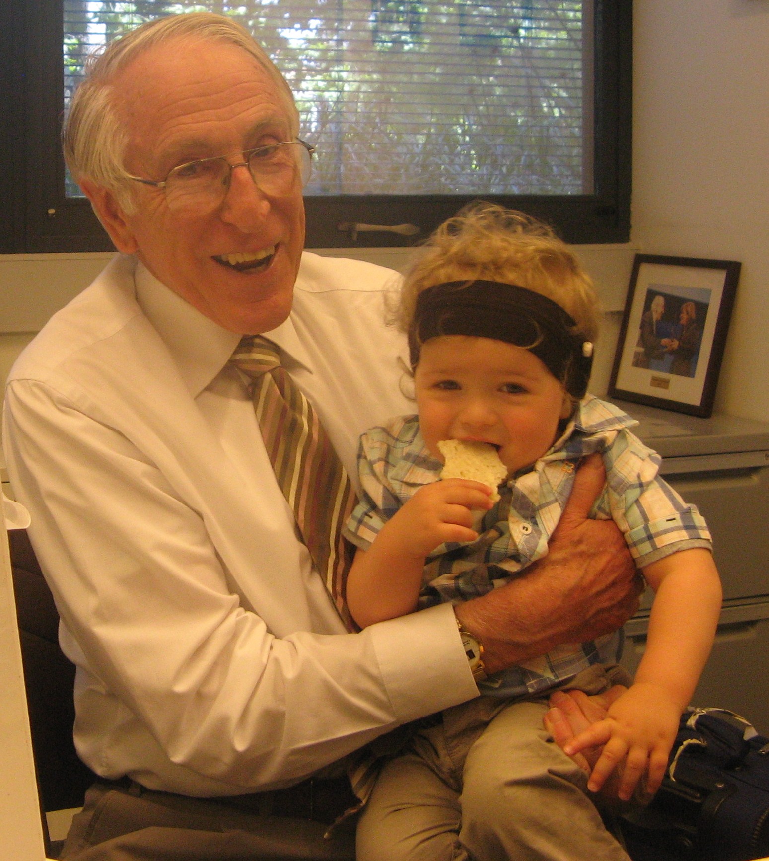 Last month we had the honour, and it certainly was nothing short of an honour, to meet this Genius. As 2012 is the 30th Anniversary of the 1st commercial Cochlear Implant, Prof. Clark has been catching up with some of his fans throughout the year. I am sure that most of those he has met could actually thank him themselves for the incredible technology that allows them to hear and master speech. Young Harry is not quite at that stage and will have to rely on us recounting the story to him as he grows.