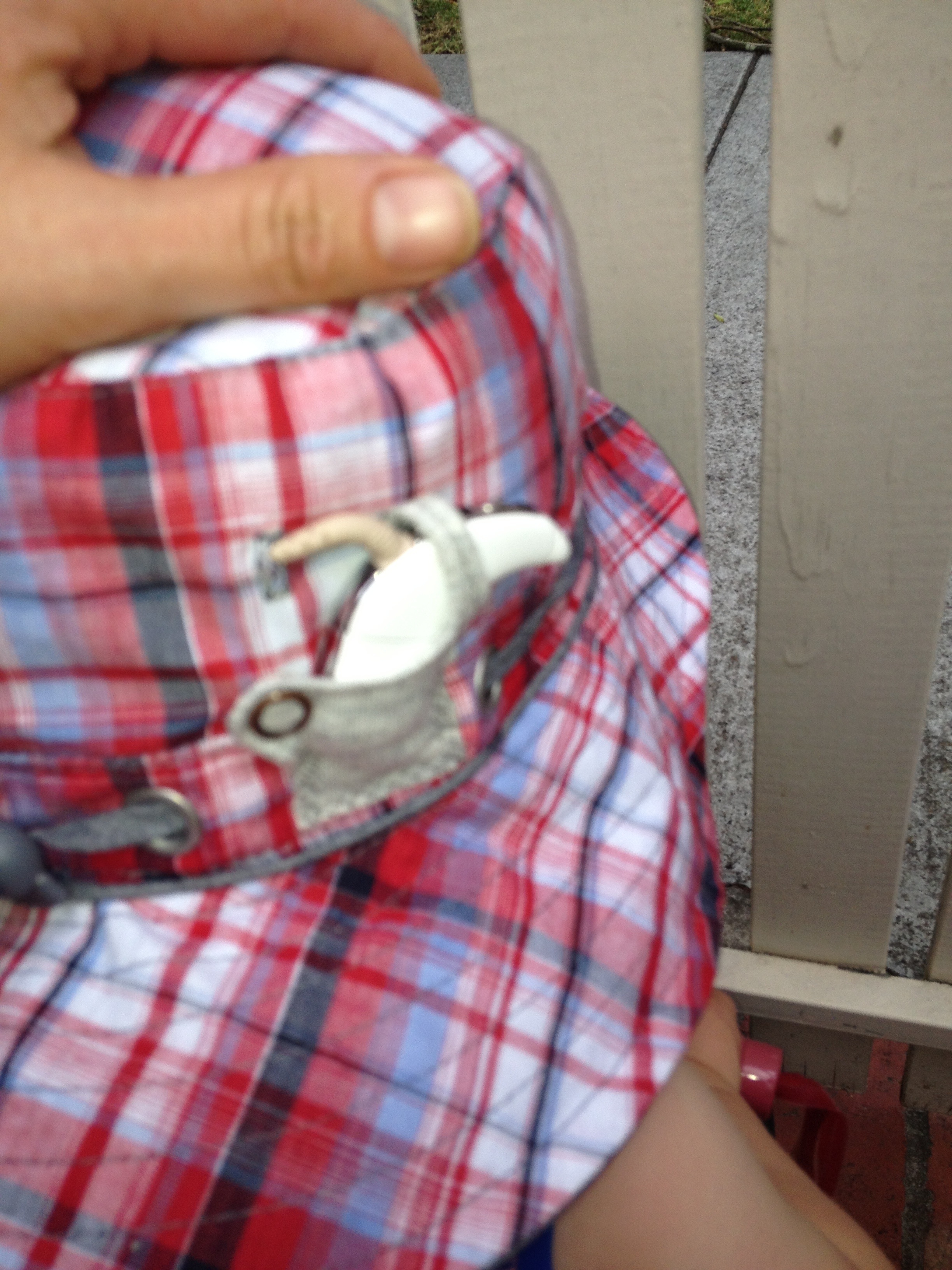 I am super excited writing this post. Tonight I met my friend Jane for an impromptu picnic dinner in the park and she brought along a sun hat I purchased for Harry that she was trying to make pockets to put the processors in.
