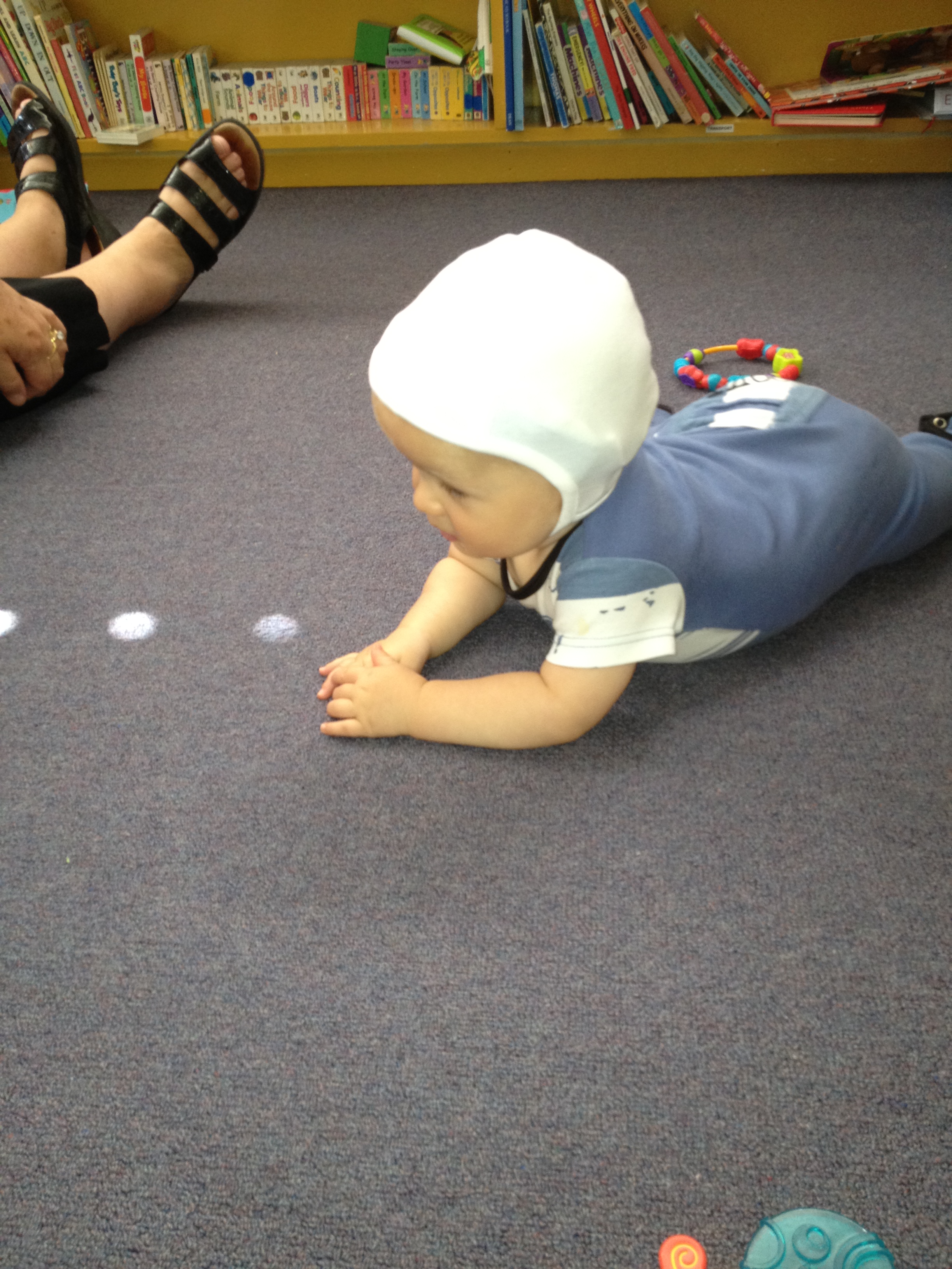 Harry 23 mnths _walking unaided (with a crawl) at the park